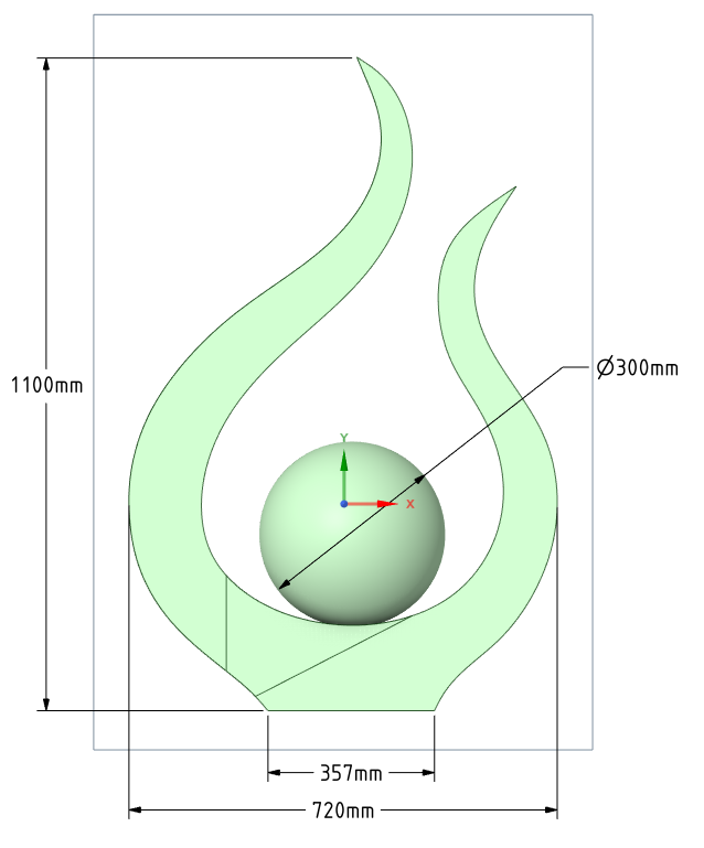 • Die Edelstahlkugel hat einen Durchmesser von 30cm.